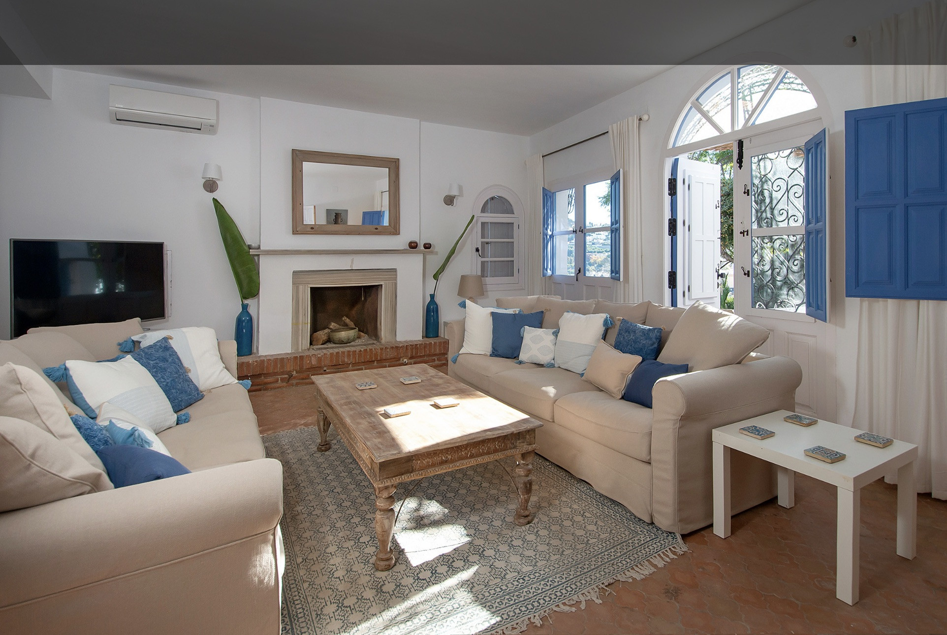 The house has air conditioning, wifi and international television channels.