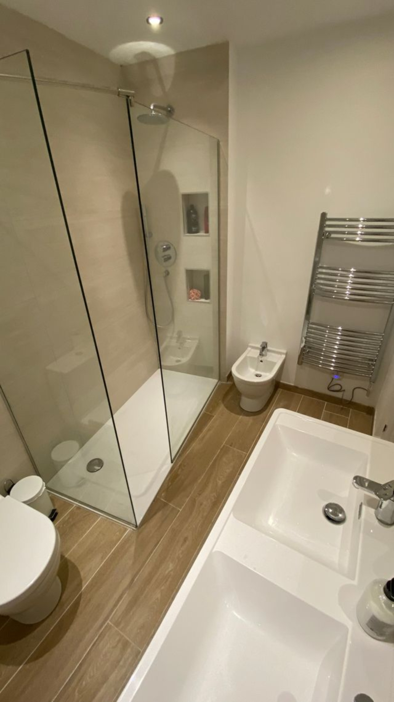 There is also a large bathroom with shower and downstairs, a separate toilet.